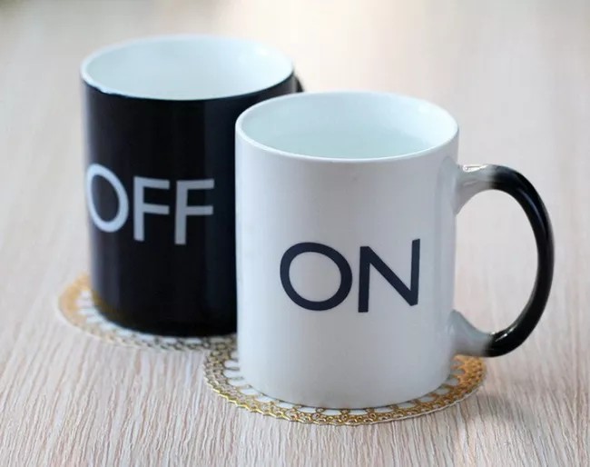 Cana termosensibila neagra cu textul de culoare alb OFF.