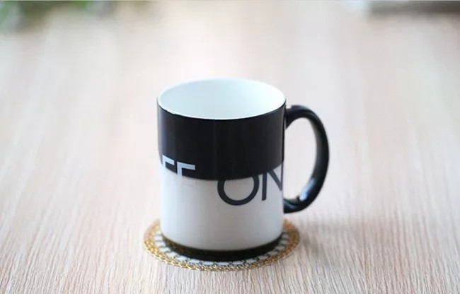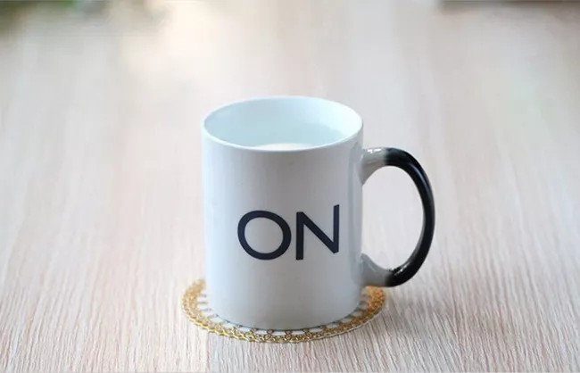 Cand se toarna lichid cald, apare textul ON de culoare negru.